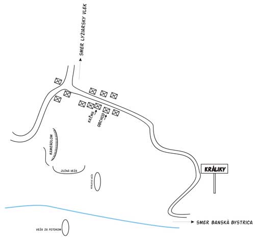 Táto oblasť je vzdialená od Banskej Bystrice (BB) 11km. Z BB je ten smer dobre značený a snáď nebudete blúdiť. Keď prídete do obce Králiky tak musíte prejsť okolo potravín na ľavej strane a cca po 150 - 200metroch bude cesta pokračovať doprava, ale vy odbočíte do ľava a pôjdete dole z kopca cca 50metrov až uvidíte malý kameňolom. Tu zaparkujete aj keď miestny obyvatelia poňali kameňolom ako smetisko, čo nepridáva na kráse. Ďalej budete pokračovať pešo. Prejdete popri kameňolome a po chvíli natrafíte na prvé vápencové skaly.