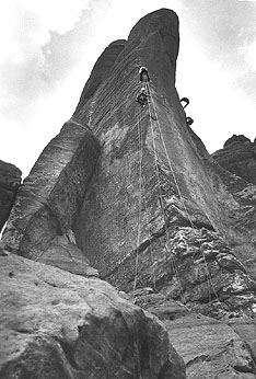 Nejsou ty názvy z druhý strany fotek ? Vždycky tam byly. A jestli mě paměť neklame (klame mě dost často) tak na této fotce leze na Tříprstou věž zrovna Gulich.