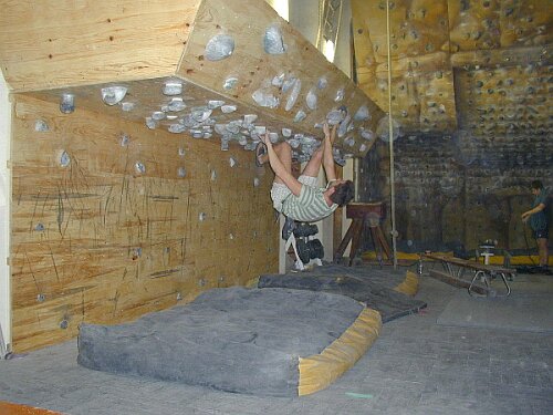 Ve výšce cca 180 cm je asi 120 cm široký a určitě víc než 4 metry dlouhý strop s mnoha chyty, na kterých se chvíli udrží i nešpičkový lezec. K dispozici je i opora v kolmé stěně a nad stropem je převislá stěnka, kam lze šáhnout na chyty za hranou nebo zaháknout patu či špičku lezečky. Je to výborný počin kluků z Týnské. Jen se bojím, že zde začne být zrovna tak narváno, jako bývá po odpoledních v nedalekém Boulder Baru V Jámě. S kamarádem jsme dnes novou stěnu vyfotili, abyste si mohli udělat představu před případnou návštěvou. A fotky posílám Hopovi, ať zváží, zda je k článečku zařadí.