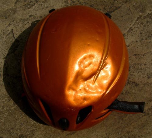Začal jsem anglicko česky nadávat a zmateně pobíhat na místě, protože mi bylo  „naprosto“ jasné, že ten člověk je mrvý. Neustále se mi před očima vracel  moment, kdy hlava narazila na kámen (ve stylu opakovaných kopů v karate filmech).  Po pár vteřinách jsem vycvakl lana a hrnul se ke Guyovi. Začal sténat a něco blekotat. Nerozuměl jsem mu ani slovo. Když jsem se mu podíval do očí, byly bez života. Něco jako oči blázna, který se na vás sice dívá, ale nevidí. Hlavou mi vířilo - na pobřeží není signál, dá se chytit asi až po 400 m nahoře na kopci, sem dolů jsme slanili, jediná cesta zpět nahoru je prusíkování, které nějakou dobu zabere. Paštička, do prdele práce. Pořád nadávám, křičím na Guye, jestli je v pořádku, přemýšlím co vím o první pomoci a že ta lehce špraclá pozice na boku je dost na pendrek. Asi po 2 minutách se tak nějak srovnal do sedu, začal komunikovat a jeho oči opět nabyly života. Zeptal jsem se, zda může pohnout rukama a nohama. Moc mě potěšilo, že mohl. Sundal jsem mu helmu – v místě kde narazila, se kus odštípl a i jinak byla pěkně pomačkaná. Připadalo mi, že jen díky tomuto kusu plastu na jeho hlavě jsem v tuto chvíli šokovaně nezíral na mozek vytékající z hlavy mého kamaráda. Guy nevěděl, kde je, co tam dělá, proč to dělá a zřejmě si ani nebyl moc jist, jestli už umřel, nebo ho to teprve čeká. Neustále opakoval, jak je mu děsně líto, že to takhle posral a opakovaně se ptal co se stalo. Potřeboval jsem pomoc. Čapnul jsem průvodce (abych věděl kde to vlastně jsme – opravdu klika, že to byl ten nový, krásně přehledný), smyčky na prusikování, v duchu požehnal televizní reklamě na číslo 999 na pobřežní stráž, která mi nějak uvízla v makovici a jal se hopsat po kamenech ke slaňovacímu lanu. Nevím, co bych dělal, kdybychom to lano stáhli a použili k lezení.