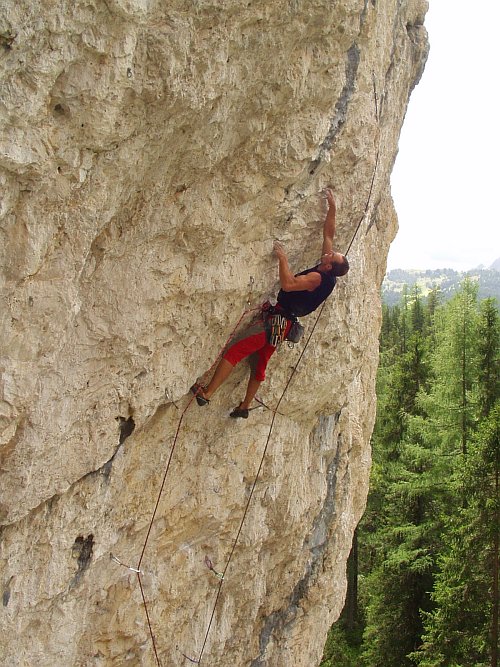 Popis: Ve svahu mezi silnicí a hotelem Tizian nad kempy v Cortině jsou 4 sektory. Nejhodnotnější je horní sektor. Není sice moc vysoký, ale o to je převislejší a hodnocení cest tvrdší. Pro někoho kvak, pro někoho super. My jsme si zde skvěle zabojovali v místních 7-áčkách a poté se rychle vydali hledat něco lehčího za 7b do jiných, sjízdnějších oblastí.