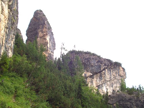Příjezd: Jako na předchozí skály, ale parkuje se dříve. Buď u mostu přes Rio Falzarego nebo u palouku o pár serpentin výše, kde začíná neznačená cesta, která se napojuje na silničku k Rifugio Cinque Torri.