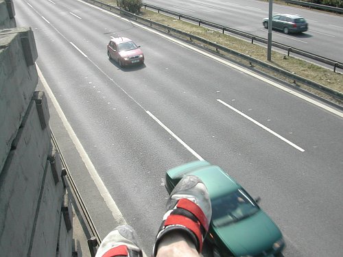 Vyrazil jsem se podívat do Michle na protihlukovou bariéru, okolo které jsem párkrát projížděl. Není to úplně špatný trénink, jen je to trošku jednotvárnější, pořád tytéž prstové spárky a nekonečné traverzování tam a zpátky. Lepší je lézt ze strany od sídliště, nad Jižní spojkou je to sice fajn adrenalin s kamionama a autama za zády, ale dvakrát za tři čtvrtě hodiny mě odtud sundavala PČRka. Stěna je dost zaprášená, takže je naprosto nevhodná pro období odstávky teplé vody, pražáci budou vědět, o čem mluvím. Jako doping doporučuji nějaké dobré SKAčko do ušisek (z vlastní zkušenosti, krásně se pak "baletí" do rytmu), ale to jen tak na okraj.