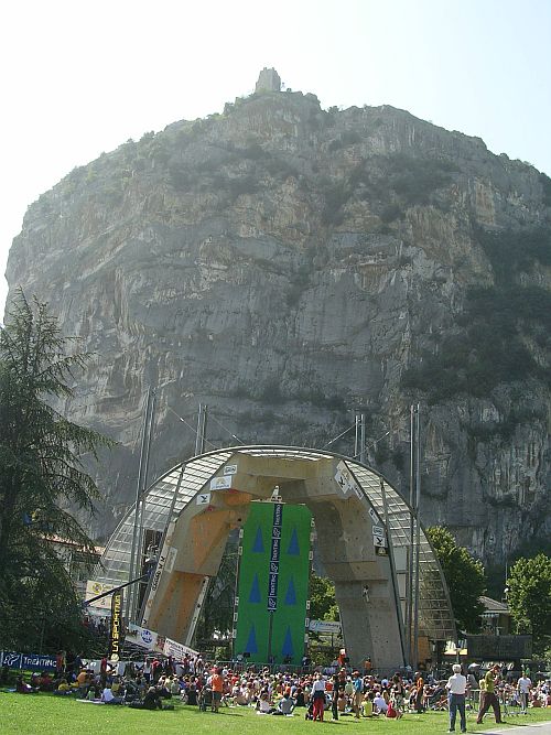 Závodní stěna v Arcu, sobota - právě se leze on sight cesta žen