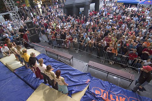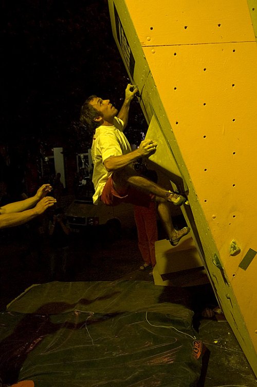 Přestavbu boulderů na mužskou kvalifikaci odlehčila a zpříjemnila exhibice diktátorů ve footbagu v čele s několikanásobným Mistrem světa Vaškem Kloudou a českých Mistrů v break dancu. Fanda Hájek opět ukázal co vše je možné (spíš nemožné) vyloudit za zvuky pusou a přestavba boulderů byla dokončena.