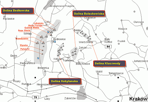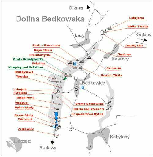 Polská Jura je pro polské lezce velký fenomén, lze ji v podstatě rozdělit na dvě základní části. Jižní, která se rozproztírá mezi městy Olkuz,ZabierzowKrakow. (popisuje průvodce Jura 2.1.) Kolem vesnice Bedkowice. Terén v této oblasti je zbrázděn řadou údolí, v kterých jsou nahusto rozesety právě lezci vyhledávané stěny.