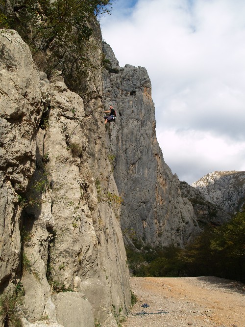 Čtvrteční ráno, první lezecký den, nebe trošku došeda, ale jinak teplo, vyrážíme do skal. U vstupu prohodíme pár slov na vrátnici a paní mi dokonce uznává poslední vstup na permanentce ze srpna. Úvodní titulek přesně vystihuje to, co jsme zažili po příjezdu do chorvatské lezecké "Mekky". Na parkovišti je naše auto druhé v pořadí a tak to po celý den zůstalo.