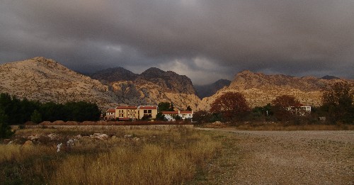 Na rozmezí obou vesnic nás zaujala na jednom z domů cedulka s nápisem, že je zde možné ubytování, svítilo se. Zazvonili jsme, vyšel pohodový starší pán a po krátkém vysvětlení nás se slovy "něma problema" uvedl do patra na terasu a ukázal apartmán pro 4? byli jsme dva, 10 Euro na jednoho/noc nám přišlo jako velmi pohodová cena, noci jsou už chladnější a navíc - soumrak ve 4 odpoledne a svítit si ve stanu jen čelovkama, to se nám nechtělo. Ten jsme stejně neměli, jen spacáky. Plácli jsme si?