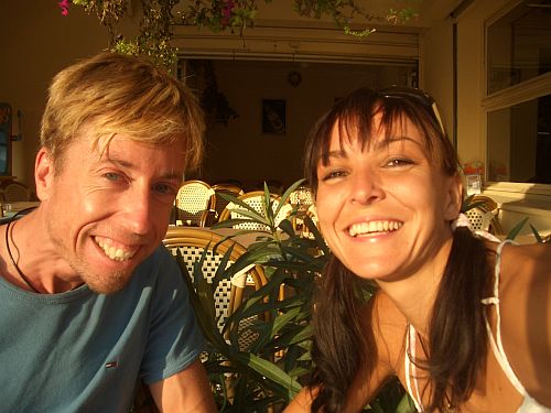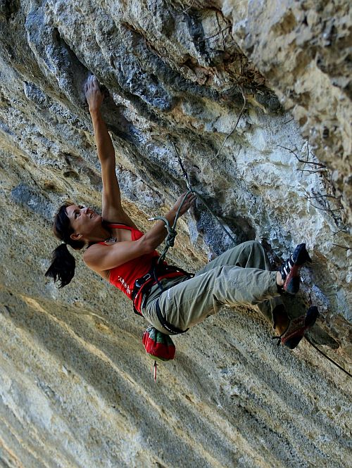 Třikrát v týdnu jsem chodila do fitnessu, klasickej trénink. Když jsem jednou šla s kámoškou domů, kolem lezecké haly, jen tak jsem prohlásila, to bychom taky mohly zkusit? A proč ne, o týden později jsme si udělaly čas a malý kurs pro začátečníky, mě to hned nadchlo, když jsem vylezla 4+ až nahoru, byla jsem nadšená. Kámoška moc ne, takže následující týdny jsem se více ocitala v hale než v posilovně. Jednoho dne jsem přišla do haly a byla prázdná až na jednoho mladíka, který byl úplně sám a bouldroval. Ahoj! Ahoj, odpověděla jsem nesměle :-). Já o tomhle nemám moc ánung, můžeš mi ukázat, jak se trénuje. Mladík byl hned v akci. Bylo to fakt super sledovat někoho, kdo se ladně pohybuje na barevných chytech. Po tréninku jsme si vyměnili čísla a domluvili se na další týden. Stále jsem nevěděla, kdo to je, jen že se jmenuje Andreas. Majitel haly mi prozradil víc: Víš o tom, že je to jeden z nejlepších lezců v Německu. Aha! Ale to mi bylo tak nějak jedno. Já chtěla jen lézt a abychom si dobře rozuměli. Uplynuly tři měsíce a my si rozuměli stále víc :-) V říjnu před dvěma lety jsem byla prvně venku na skalách ve Francii. A to se nezměnilo, po dvou letech jsme zase ve Francii, co se jen změnilo, že jsem udělala pokroky v lezení a Andi také.