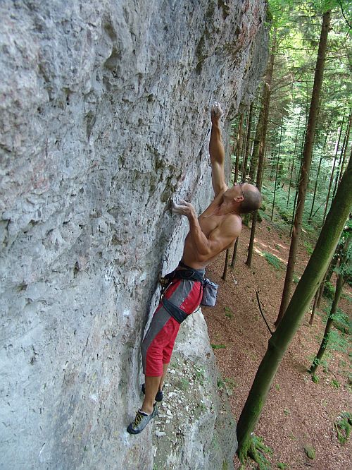 Heavy Metal Landler 8 stěnové lezení po malých lištách, nezapoměňte každému chytu zahrozit a pořádně kývat či kroutit hlavou, mařeny sebou