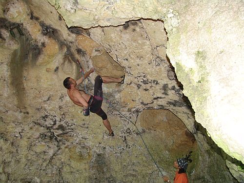 Rumblefish 8+/9- po lištičkách ke klíči, technicky obtížný traverzík, z kterého se krásně lítá