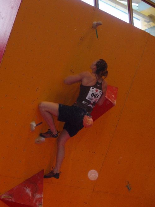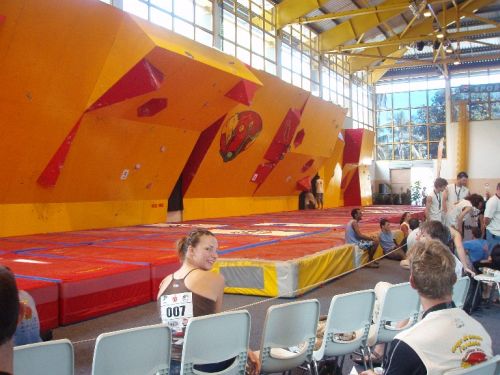 Bouldery stavěl Angličan a myslím, že byly hodně povedený a zajímavý. Účast závodníků nebyla sice nejhojnější, ala zato dost kvalitní. Zúčastnilo se 14 států a u nás v kategorii žen už 8 závodnic z deseti mělo zkušenosti z finále ve SP. Špičkových závodníků je dnes více a boj o medaile je velmi otevřený (to např. dokazuje, že i David Lama – mistr Evropy v boulderingu 2007 postupoval do semifinále z 20. místa). Bouldery mně docela seděly a do semifinále a finále jsem postoupila celkem bez problémů.