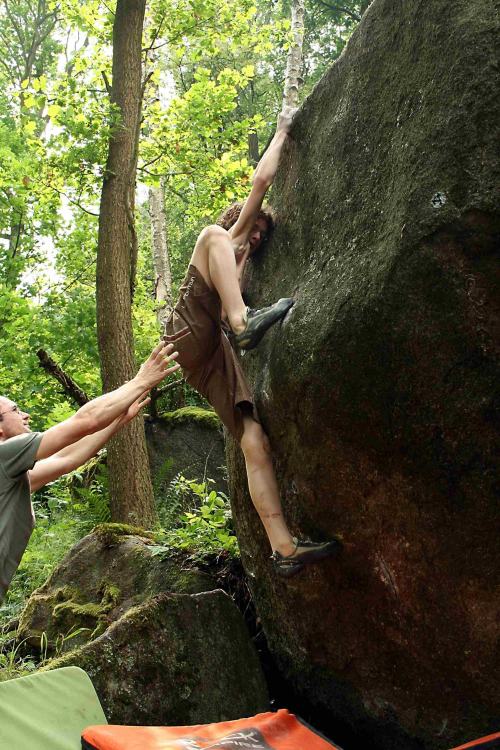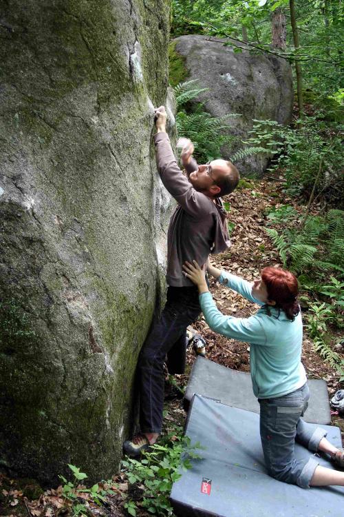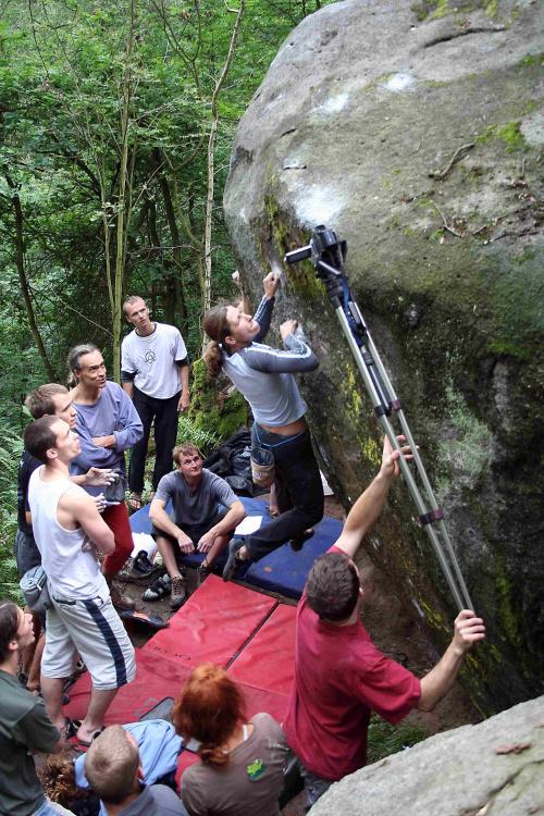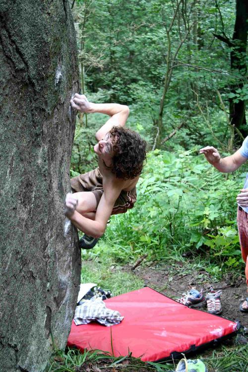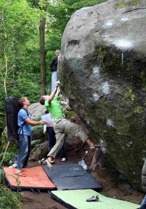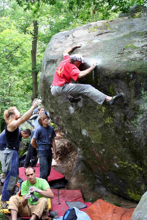 Myslím, že na počet lidí jich bylo dost. Nejoblíbenější byl asi boulder „Rok ďábla“ za 7A. Charakterově převládali lišty, ostatně jako na Petráči obecně, ale dali se i slušně odřít hřbety rukou ze spár a dlaně z boulí. V klasifikaci jsme přitvrdili. U věcí vyšších obtížností to asi bylo v pořádku, protože nic moc asi nebude klesat, u pětek a šestek jsme to asi přepálili a nějaké úpravy budou zapotřebí. Škoda, že lezci nevyslyšeli prosbu zapsat do tabulek svůj názor na klasifikaci. Tak třeba tady v komentářích nebo na mailu. Z těch nejtěžších věcí nikdo nezkoušel „Black boxe“ za 8B a „Nikole, Sharma, loupežník“ (8A+) s přehledem odolal. Zvláštní kapitolou možná bude boulder „Retro-hrad“ (7C), taktéž s klidem bez opakování.