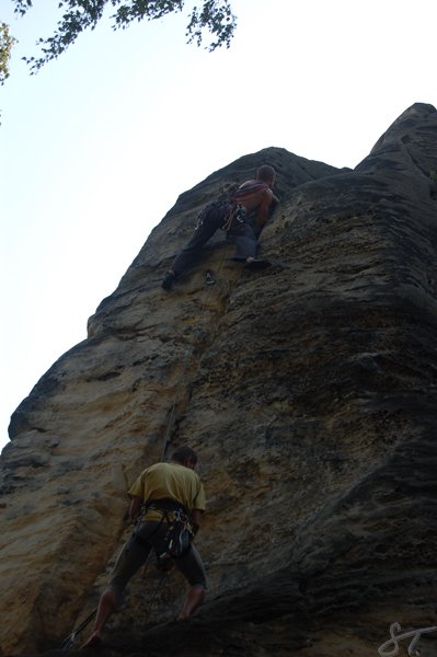 Odpočinek v cestě a jeden pytel. Standa Bulka a Zbyněk Dvořáček, Čihulovy sokolíky VII, Rektorky – Východní věž, Prachovské skály