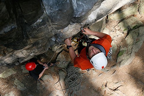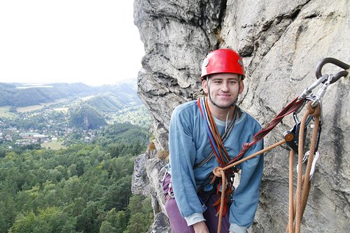Od května společně trénujeme na českých pískovcových a vápencových skalách. Trénujeme hlavně postup po laně, techniku postupu ve velkých stěnách a celkovou fyzičku.