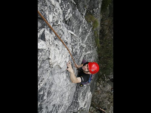 Nechceme eliminovat Honzovo lezení pouze na postup podél lana. Rádi bychom nechali Honzu lézt volně. A my víme, že to umí. Jak taky Honzu známe, víme že, se Honza pustí do čištění nějaké délky.