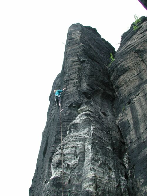 Může se vám zdát, že jsem se v předchozí části příliš zabýval klasifikací cest a že co je psáno, to je dáno. Jenže písek není vynýtované vápno, kde to maximálně nepřelezete. Pokud v průvodcích lítá hodnocení obtížnosti až o tři písmena, může to pro někoho být fatální záležitost. Další věc jsou RP přelezy. Odpor klasiků k uvádění obtížnosti RP přelezu docela chápu. Nechápu ale, proč jim vadí i u přímých linií, kde lano skálu nijak nedře. Ono se po posezení v jištění přelézá těch „pár“ metrů k dalšímu kruhu poněkud snáze. Například na Křížáku si můžete podle nového průvodce přelézt několik místních VIIa, která by v Sasku byla za VIIa, nebo VIIb, ale také VIIc, a RP možná VIIIa. Až se pár nešťastníků zrakví, možná v tom zas někdo udělá pořádek. To se například povedlo v novém průvodci na Labák, kde je to všechno vůči Sasku podhodnocené rovnoměrně a kde víte , co můžete od místního VIIb čekat. Prostě jste připravený, že to nebude zadarmo, ale že to bude super a že si pak se stejnou námahou vylezete v reichu pár VIIIa.