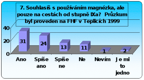 Ps.: V r. 1999 jsem provedl na FHF průzkum veřejného mínění na počtu asi 100 lezců. Výsledky jistě nelze zevšeobecňovat na veškerou lezeckou veřejnost, nicméně vám grafy uvedené dole mohou mnohé napovědět.