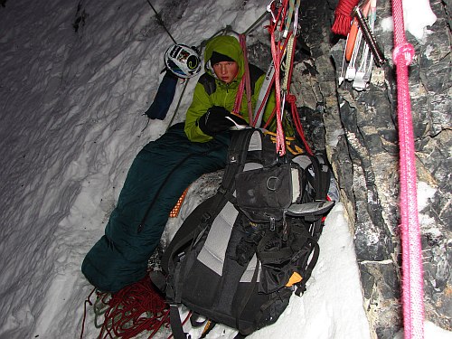 Mysleli jsme si, že bude nahoře více sněhu a že si v něm zbudujeme dobrý bivak, ale bylo tam jen asi 20 cm tvrdého firmu a led a pak už skála.