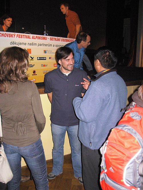 Další z hostů Carlos Suarez z Madridu po své přednášce o lezení a base jumpingu. Carlos je mj. Kurtův rádce při jeho cestách do Jižní Ameriky, který mu pomohl mj. se studiem španělštiny. Španělsky hovořící Amerika bude zřejmě další z cílů Kurta Alberta. Řekl mi, že by chtěl příští rok zase vyrazit za lezením do Venezuely a možná do Mexika.