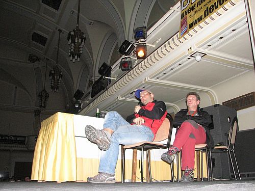 V pátek odpoledne přivítal diváky v sále moderátor Honza Vesták. V minulých letech již moderoval několik panelových diskusí a letos se pustil do moderování celé akce. Nejen přednášející, ale i on byl ozdobou letošního ročníku. Sám je totiž horolezcem, který mimo jiné stál na vrcholu osmitisícovky. Kombinace bohatých horolezeckých zkušeností s dobrými vyjadřovacími schopnosti a smyslem pro humor je to nejlepší, co může moderátorský post potkat.