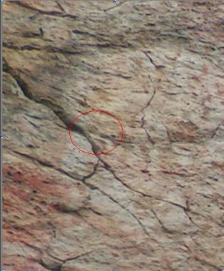 Ve variantě mezi cestami Atlantis a Pepkem Námořníkem už bez zábran přisekal chyty. Foto první je původní stav, druhé foto je po úpravách. Fotky, které jsou pořízeny jen den po sobě. Děkuji přátelům za zaslání fota. Přisekáním chytů byla snížena obtížnost sousední starší cesty Pepek Námořník. Jako náhodou řeší nejtěžší místo!!! Názor ať si každý udělá sám, kde že je lišta a jak vypadala. Teď už je snad jasno. Poslední fotka ukazuje na jasné stopy po sekáči.