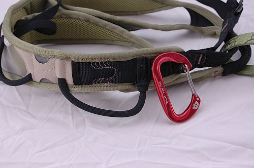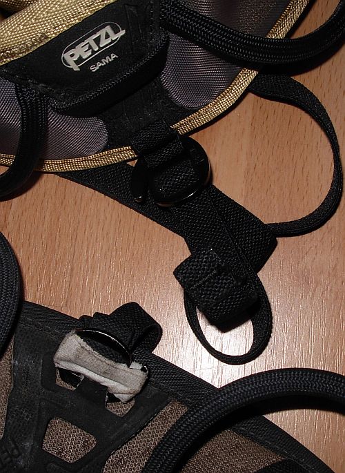 Menším vylepšením letošního modelu oproti těm předchozím je ukotvení háčku, kterým jsou přichyceny gumové tkanice vedoucí od zadní strany nohaviček k zadní části hlavního pásu. Starší model měl kovový háček uchycen poměrně volně v koženém oku, a často se stávalo, že se při lezení vyhákl. Nyní je pevněji ukotven v pružném očku, a ani jednou se nám při zkoušení nevyvlékl.