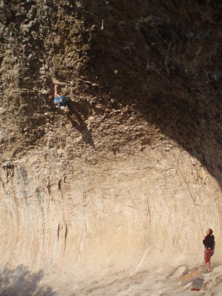 První volba padla na oblast 9áček a těžkých cest v převislé jeskyni- St.Linya. K dnešnímu datu jsme napočítali jedno 9a+, a dalších dvacet cest mezi 9a až 8c.