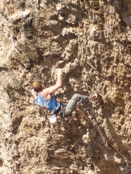 Po pár dnech jsme měli ruce od krápníků sedřené a tělo si žádalo změnu. A tak jsme si přejeli do 30km vzdálené oblasti Terradets. Je to oblast 8áček, cesty jsou vytrvalostní, 30-ti metrů dlouhé, mírně až středně převislé.