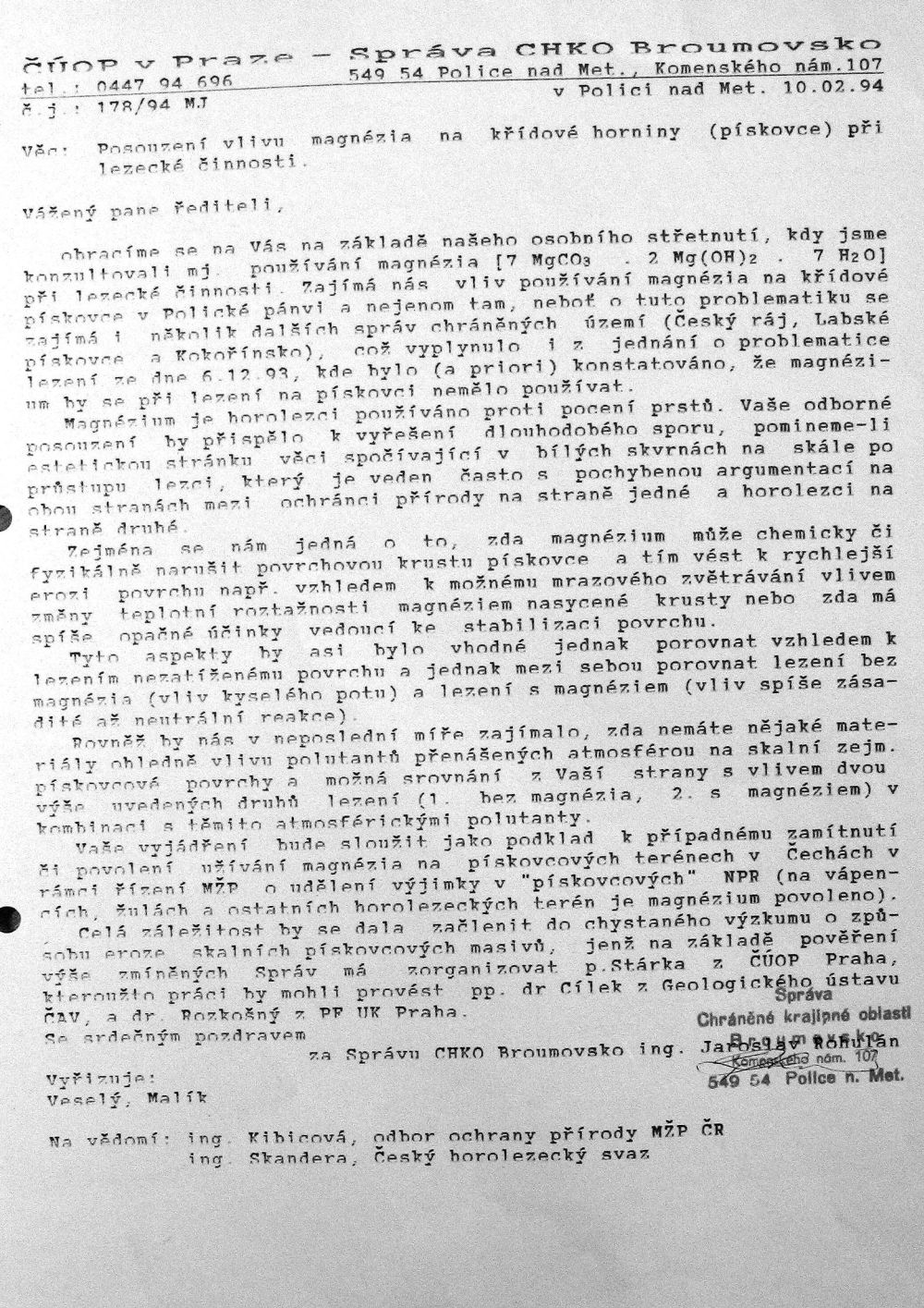 Na závěr přikládám několik názorů, které dorazily mailem. Určitým způsobem pomohly formovat názory na danou problematiku a snad pomohou v rozhodnutí i Vám. Prosím, i pokud nesouhlasíte s používáním MG na pískovci zvažte, zda je žádoucí pokračovat v nastoleném trendu nekonstruktivní konfrontace nebo zda se začneme chovat jako lidé.