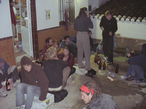 Děsbengál, průvan, parta dredatejch mastí stolní fotbálek, další jako smyslů zbavení řežou do bong, dvanáctiletá dcerka zkouší břišní tanec , všichni lejou litrový lahváče a hulej. První Kruzcampo. Vůbec nechutná špatně. Dvojitá gramáž se jeví spíše výhodou. Nemusíš tak často na bar a máš tak víc času na vstřebání prvních dojmů...