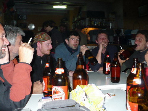 Konečně převis. Bienvenidos al circo: 7b pp. Kaspíny s Jájosem: Coňo Paco 7a pp. Na první den spokojenost tak hurá do Refa. Zavřeno! Jak to?:" Vždyť má votvírat v sedum a už je sedum pět!" Deset žíznivejch čeká a doufá. Přijíždí zdejší, někam telefonuje. Naděje. Konečně! Půl devátý otevírá. Rychle hasit!