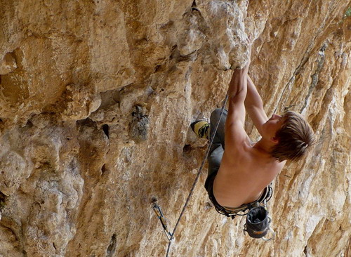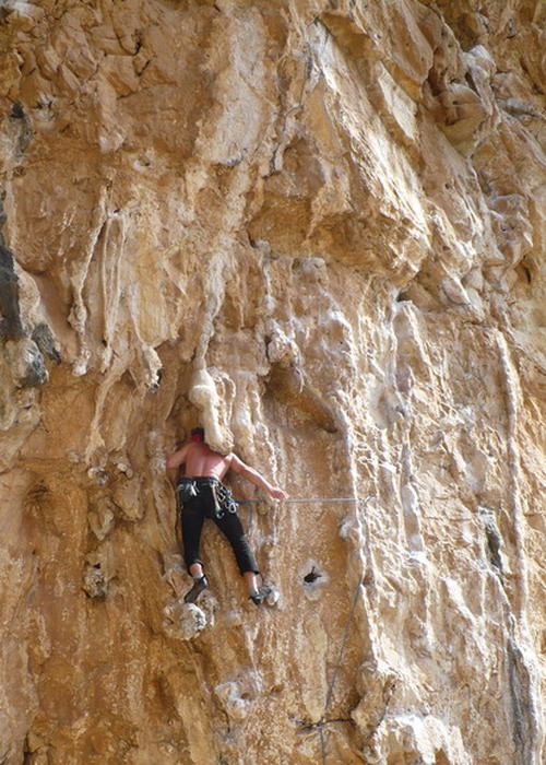 Poema roca: nádherná lezba po krápníkách: 7a os. Potom Vechio trador 7b+, dva pokusy a nic. No neva, času dost, jsme tu teprv druhej den. Jde se nakupovat k Maribel.