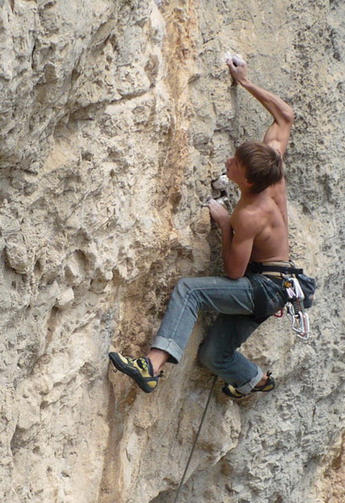 Registrace   |   Tři pevné body prvolezce: Naděje, že nahoře půjde založit, Láska i ktomu nejtitěrnějšímu chytečku a Víra ve svého výborného jističe.