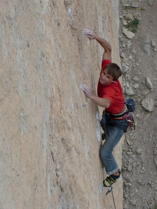 Polední siesta. Běžěc! To se mi nechce líbit.... Průser! Tlama - dlouhá skála, krátký lano!!! Všichni víme, všichni známe a přesto se každej rok někdo proletí. Běžíme na pomoc. Sápeme se pod stěnu. "Doprdele nechci vidět mrtvolu!" Žije!