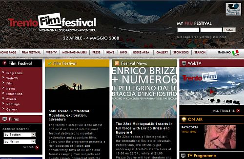 Ukázky lezeckých a horských filmů on line nabízejí  stránky festivalu horských filmů - 56. Trento FilmFestival. Festival v italském Trentu, který začal toto úterý, potrvá do 4. května 2008.