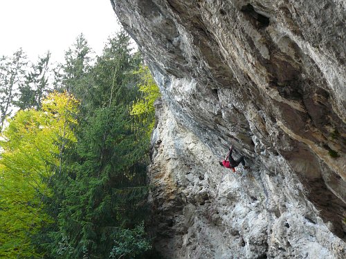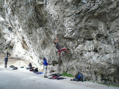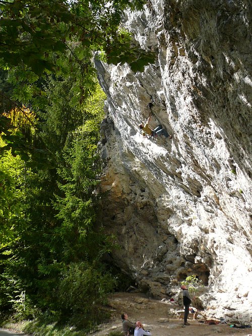 Monster Ještě více převislý sektor s atletickými cestami přímo nad silnicí. Dá se zde lézt i za deště, ale některé díry protečou.