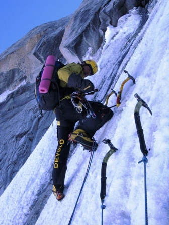 posílám Vám  mírumilovnou, ale přesto bombu z Pakistánského Karakoramu. Naše první výprava ze série Devold TripleNorthWalls  skon-či-la-la-la. Za tři perný dny 13.7 (start 5.30hod) až do 15.7(konec 20.30hod) jsem spolu s Honzou dokončili prvovýstup na Kapuru v údolí Charakusa. Sečteno a podtrženo:cesta nese název Wild Wings,je dlouhá 1300m vylezená alpským stylem a vede severozápadním zářezem na západní vrchol (6200 m.n.m). Obtížnost v ledu WI 5+,v mixech M7 a celkový sklon 70°. Povedlo se nejen slézt kopec ale také nafilmovat a nafotit dostatek materiálu. Takže,až se dostaneme ze Skardu přes Islamabád letecky do Čech,bude se na co koukat a samozřejmě také i číst.