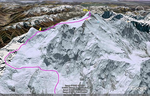 Aktuálne miesto bivaku v 6800 m Nonesa a Kehrera pri ich záchrane