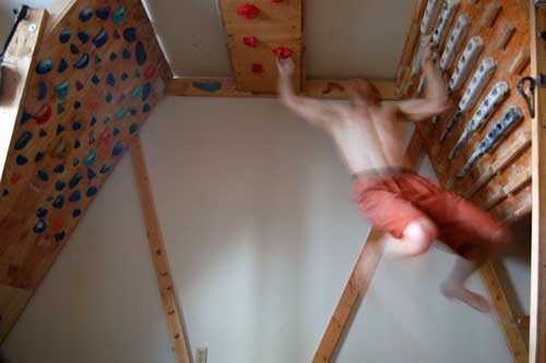 Postman: No jo, Marci! Tak to je kapitola sama o sobě. Lezení je o důvěře a přátelství. Patřím mezi ty šťastlivce, kteří v útlém věku našli svoji velkou lásku trvající dodnes, klepu na dřevo. Marci se postupně také oddala mé lezecké vášni a tak spolu trávíme krásné chvíle ve skalách a navzájem se podporujeme. To je k nezaplacení. Bez její podpory a trpělivosti bych takových výkonu horko těžko dosáhnul. A k těm kilům a tréninku - Po sezóně na Problem Child jsem věděl, že musím posílit na malých chytech a zpevnit celé tělo. A tak jsme doma v ložnici rozšířili naší campus desku o malou střechu a systémovou stěnu. Tím jsme vytvořili takovou útulnou jeskyňku, pod kterou máme matraci na spaní. Inu, byt máme malý a tak jsme zkombinovali ložnici s mojí pracovnou a tréninkovou stěnou. Taky mi hodně pomohly pravidelné tréninky na naší univerzitní bouldrovce, kde jsem se vrhal do problémů postavených naším kamarádem Pawelem “polská raketa” a také skupinou siláků ze sousedního Idaha – mladých kluků, co vždycky vymysleli nějakou šílenost a já to s nima zkoušel. Stavěli problémy, co mně vůbec nevyhovovaly a asi díky tomu jsem dost posílil. K tomu jsem ještě přidal snahu o tzv. Bambusův styl, tedy lízt zpevněně, staticky a nemít nohy jen na ozdobu.
