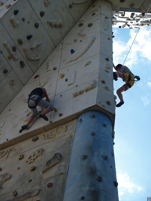 Lezení na rychlost se od obtížnosti celkem dost liší, ne že by se při tom spěchu nehodilo umět vylézt něco těžkého, ale při tom kvapu má lezec větší dynamiku, takže pádí a skáče po chytech které by normálně obtížněji dosahoval a musel by minimálně notně víc stoupat nohama. Obvykle jsou rychosti špičkových lezců přes 1 m za vteřinu. U nás si to můžete vyzkoušet a sobotní motivací pro Vás budiž finanční odměny za první 3 místa, nemáme problém postarat se ještě ještě o nějaké další borce, ale určitě budeme rádi když zašlete mejlík předem.