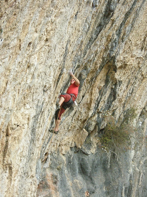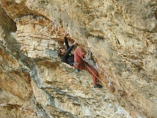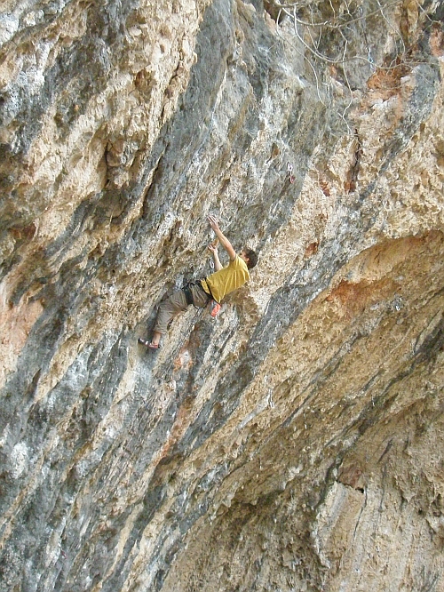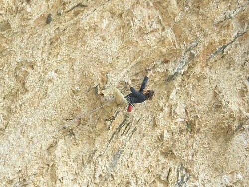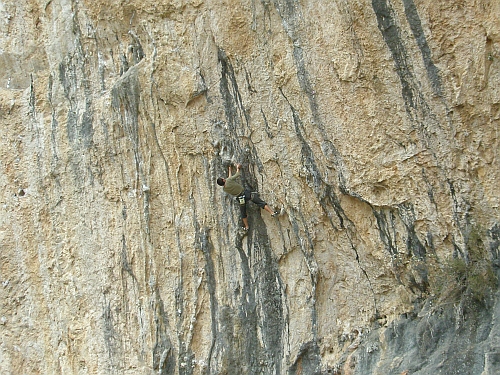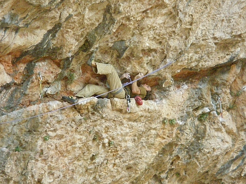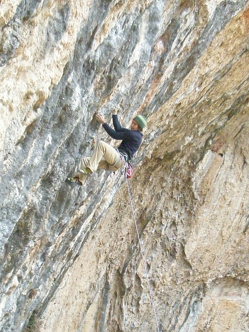 Boludo 7b+ další oblíbená cesta, začátek několika prodloužení, silové lezení po krápníky s bouldrem ve 2/3 cesty