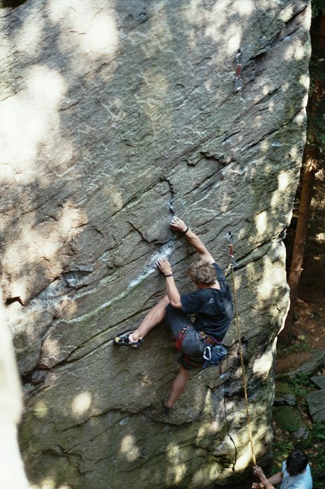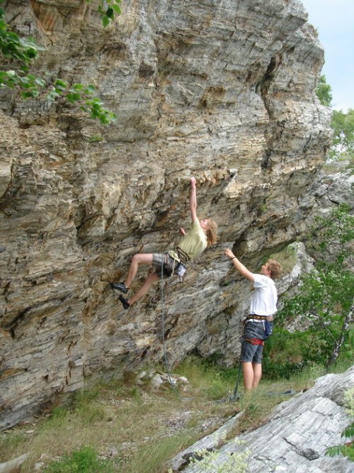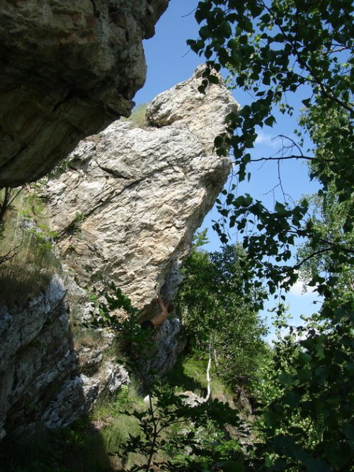 Jedinou výjimkou oblasti je Stěna nad pasekou, která svým charakterem připomíná spíš horské lezení, tady se taky lezec nemůže moc spolehnout na jištění v borhácích, ale pouze na stoppery a friendy, které určitě hojně využije. Tímto bych chtěl navíc dodat, že cesty, které lze odjistit vlastním jištěním (většinou klasické výstupy ze 60. let) jsou i v jiných sektorech zcela nezajištěné a borháky tak potkáte pouze v nových cestách, nebo tam kde by pád nemusel skončit nejlépe. Na doporučení z lehčích cest např.: Puklina (6) na Převislé, nebo Tisíc slunců (6) na Sluneční stěně. Jedná se o lezení po dobrých chytech v převisu a stačí lepší vytrvalost. Z těžších rozhodně Harakiri (8-) a Imaginaci (7+) na Lesním bloku, nebo Prozřetelnost (8-) na Indiánovi. U těchto cest se kromě vytrvalosti připravte na těžší bouldry v až 30° převisu za malé, mnohdy bolavé lišty. Rozhodně bych ještě doporučil za pěkného počasí špekáčky, které upečete na ohništi s nevšedním výhledem na hlavní hřeben Jeseníků ...