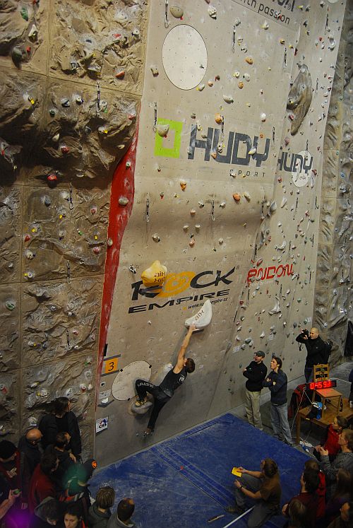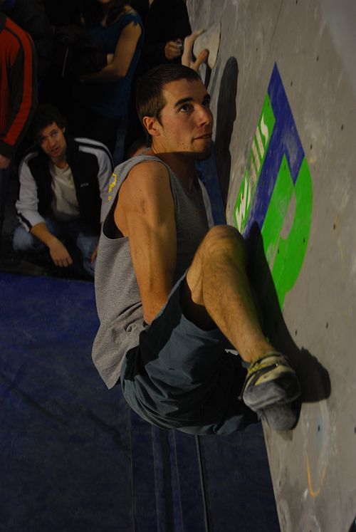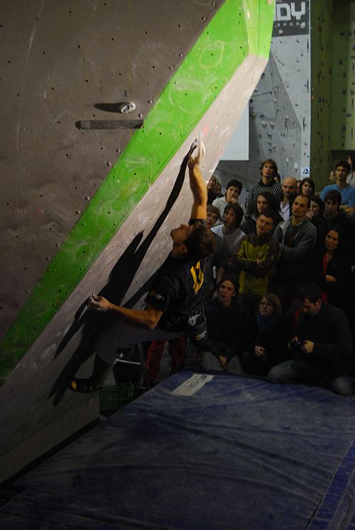 Finále MČR v boulderingu 2008, boulder č. 4, Martin Stráník se blíží k topu