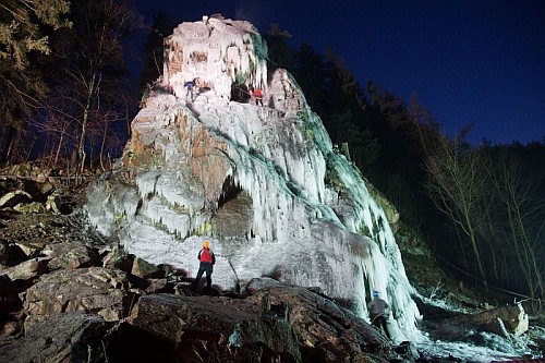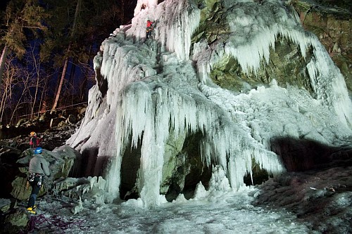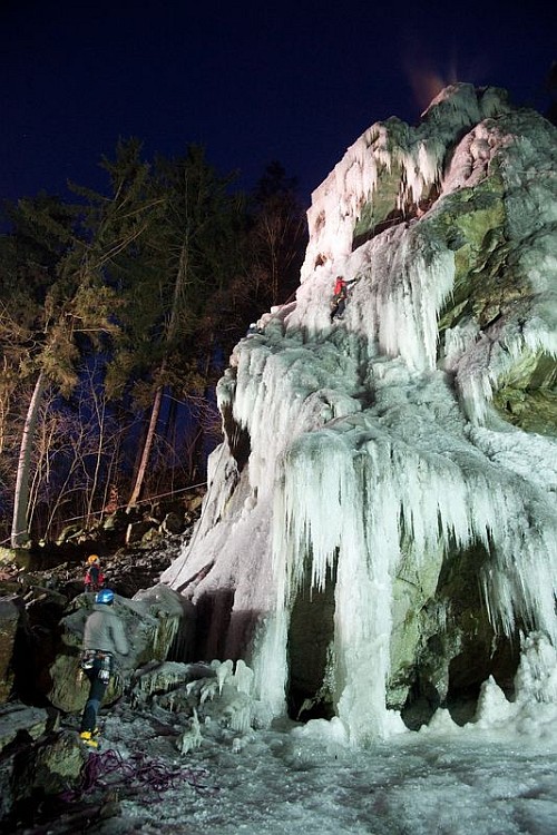Na čtyřicetimetrové skále je dnes souvislá vrstva ledu o síle 5 – 30 centimetrů a jsou zde připraveny a odjištěny trasy různých obtížností. Zaleze si jak úplný začátečník, tak ostřílený „ledový“ mazák :-)