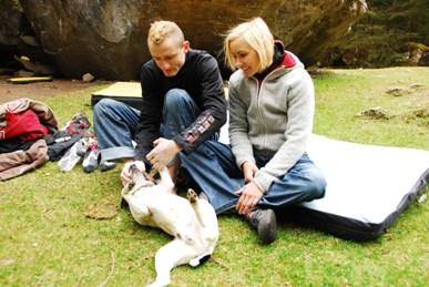 Bouldering venku mě letos fakt chytl a je to pro mě velký posun. Nepotřebuju při něm nic, mám za sebou jenom bouldermatku, můžu si dát kolik chci pokusů, to mě baví. Určitě na jaře zase do Fontáče zajedeme.