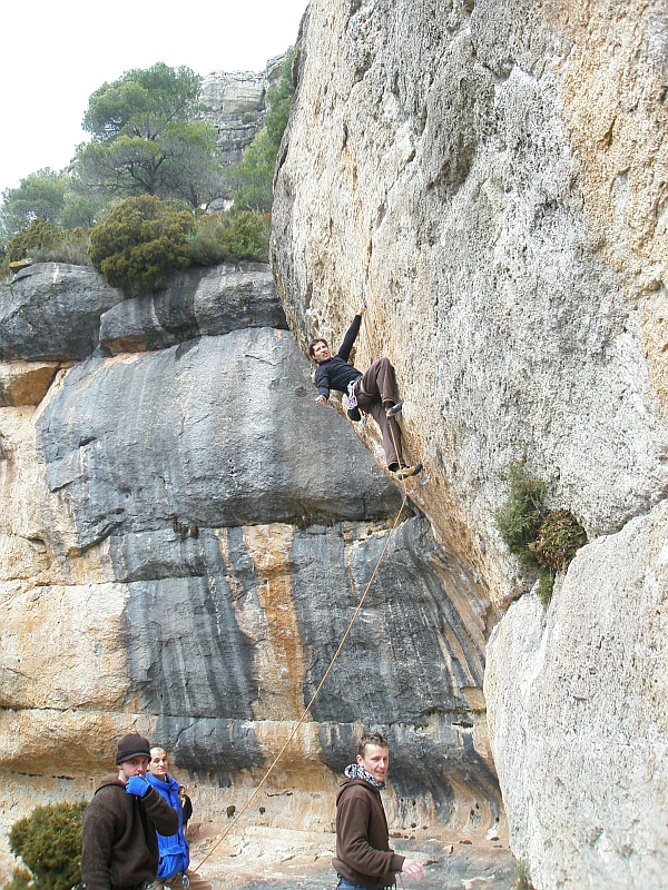 Je sice sobota, ale aspoň sedíme v Majklovo Mondeu tři, přidal se Jirous. Nikdo jinej by ho prej nevzal, všichni v Praze se ho bojí, nechápu proč. Cesta do Seynes utekla rychle a už vím, že Mondeo s turbodieslem se na 3000 otáček nerozjíždí, nejsem přece debil. V Seynes je jasno a tudíž pěkná kosa. Ve skalách dělají ohně jen  debilové, ale jsme snad debilové, abychom mrzli? Zamrzlý pětilitrový kanystr svědčí o mrazu samici. S mrazem je to jako s komáry, krev pijou jen samice, samci si v klidu chlastaj nektar a nepruděj. Přes den pohoda, akorát obvyklý přechod ze stěny na skálu je tvrdší než obvykle. Po pár cestách balíme směr Siurana. Plánovaná zastávka v Targassone se ruší. Vždycky je dobrý mít někoho před sebou, nejlépe nějakého debila. Koho jiného by v únoru překvapil v Pyrenejích sníh? A tady je máme, debily. Mondeo drclo do malého stanu krčícího se v koutě parkáče v Siuraně, pro jistotu s dálkovými světly. Naše přítomnost Balboáče s Jirkou Bažantem přímo oslnila.