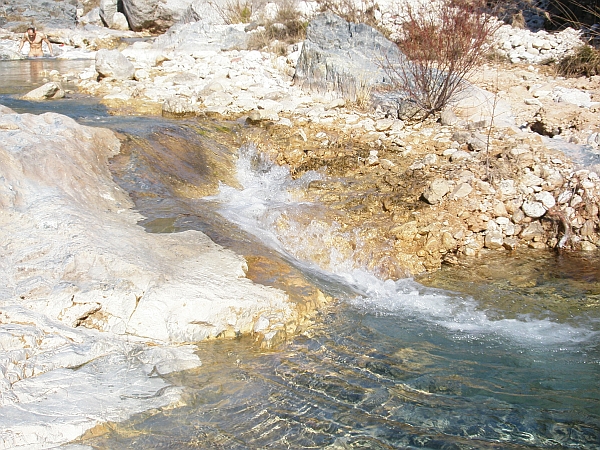 Koupelna kus pod hotelem Can Melafots, asi tak 40 minut chůze a 200 výškových metrů