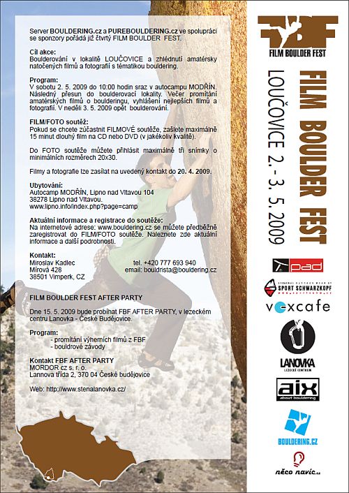 Server BOULDERING.cz a PUREBOULDERING.cz ve spolupráci se sponzory pořádá již čtvrtý FILM BOULDER FEST.