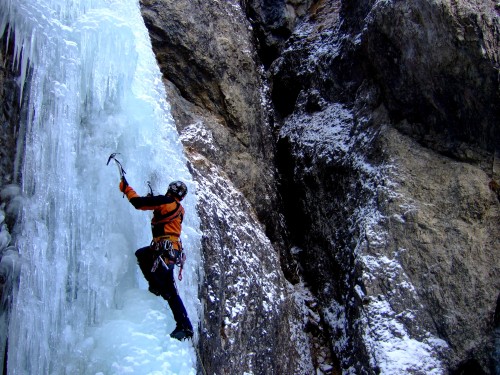 Nepříznivé lednové počasí zapříčinilo moje zaměření trochu jiným směrem: začali jsme vyrážet na rakouské ledy. Prvním takovým výjezdem byl Gastein 10.-11.1., kde jsme vylezli pár rozlezovek. Hned týden na to jsme díky ideálním teplotám vyrazili znovu podobným směrem, cílem byly tentokrát ledy v okolí Halstättersee. V sobotu jsme nedokázali odolat (a on nám) místnímu nejdelšímu ledu, 300m dlouhému Simplebachu (WI 5-), hlubokému vyledněnému kaňonu, jenž se v létě využívá ke canyonigu. Parádní lezení místy jen metr širokou roklí se střídalo s mohutnějšími výšvihy a vše končilo poslední klíčovou délkou s velmi křehkým ledem. Na neděli jsme si vybrali podle průvodce ,,jeden z neimpozantnějších ledových útvarů v Rakousku“, superklasiku Schleierfall, WI 5, 230m. Výraznější oteplení zapříčinilo důkladnou sprchu z tajícího ledu ve strmých délkách, na druhou stranu nebyla nikde ani noha. Po pár hodinách byl led náš, i když ve výlezové délce, kde pod 10 cm tlustým ledem hučel vodopád, jsme pochopili, proč že už tu dnes nikdo neleze.